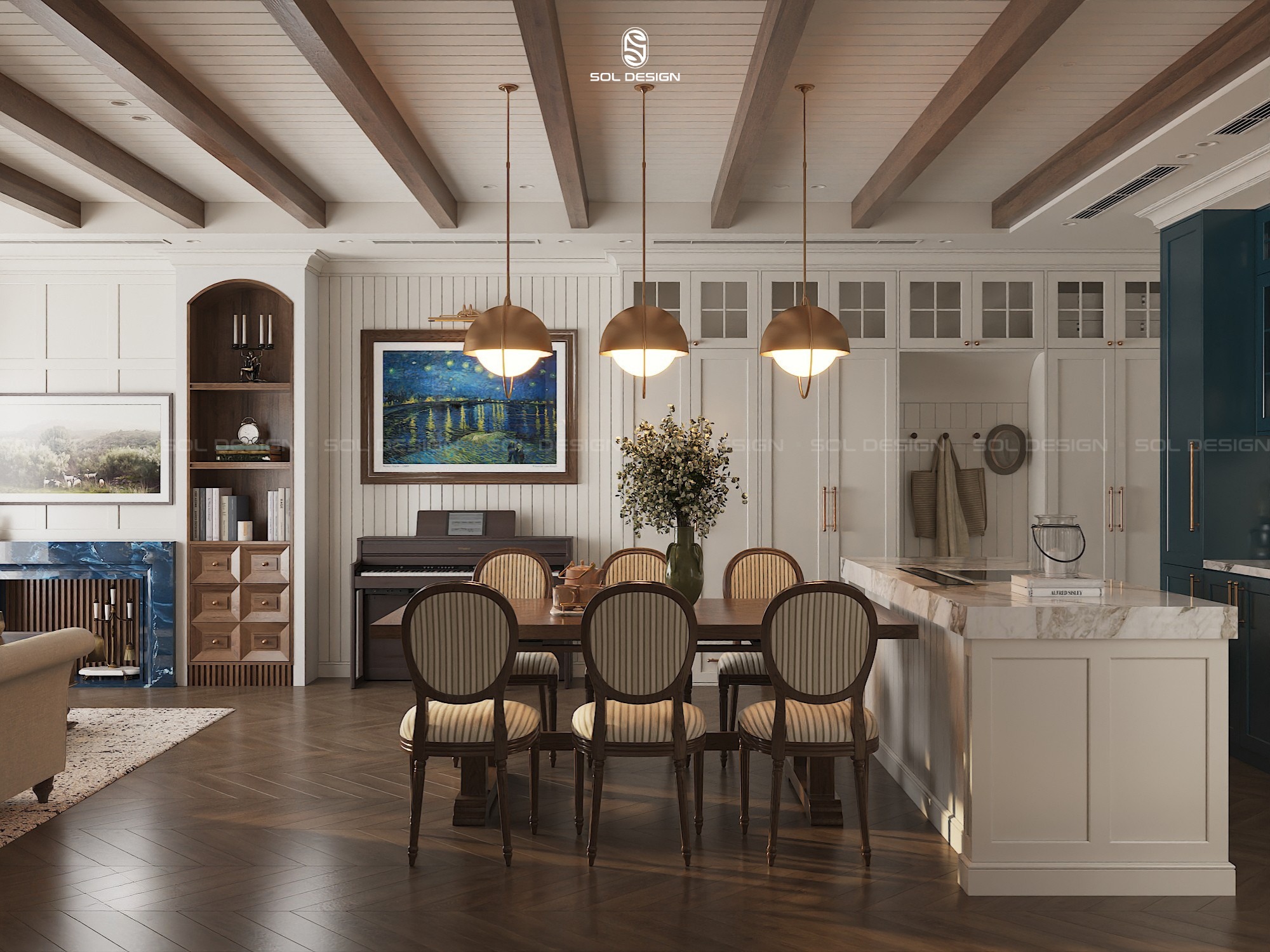 Trong các dự án thực tế, Sol Design không áp dụng Farmhouse theo cách rập khuôn. Thay vào đó, phong cách được tinh chỉnh để phù hợp với diện tích. Đặc biệt là thói quen sinh hoạt của gia chủ.